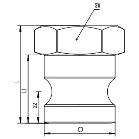 SIZE | DN | PART # | OD | L | L1 | SW | Weight(kg) | ||||